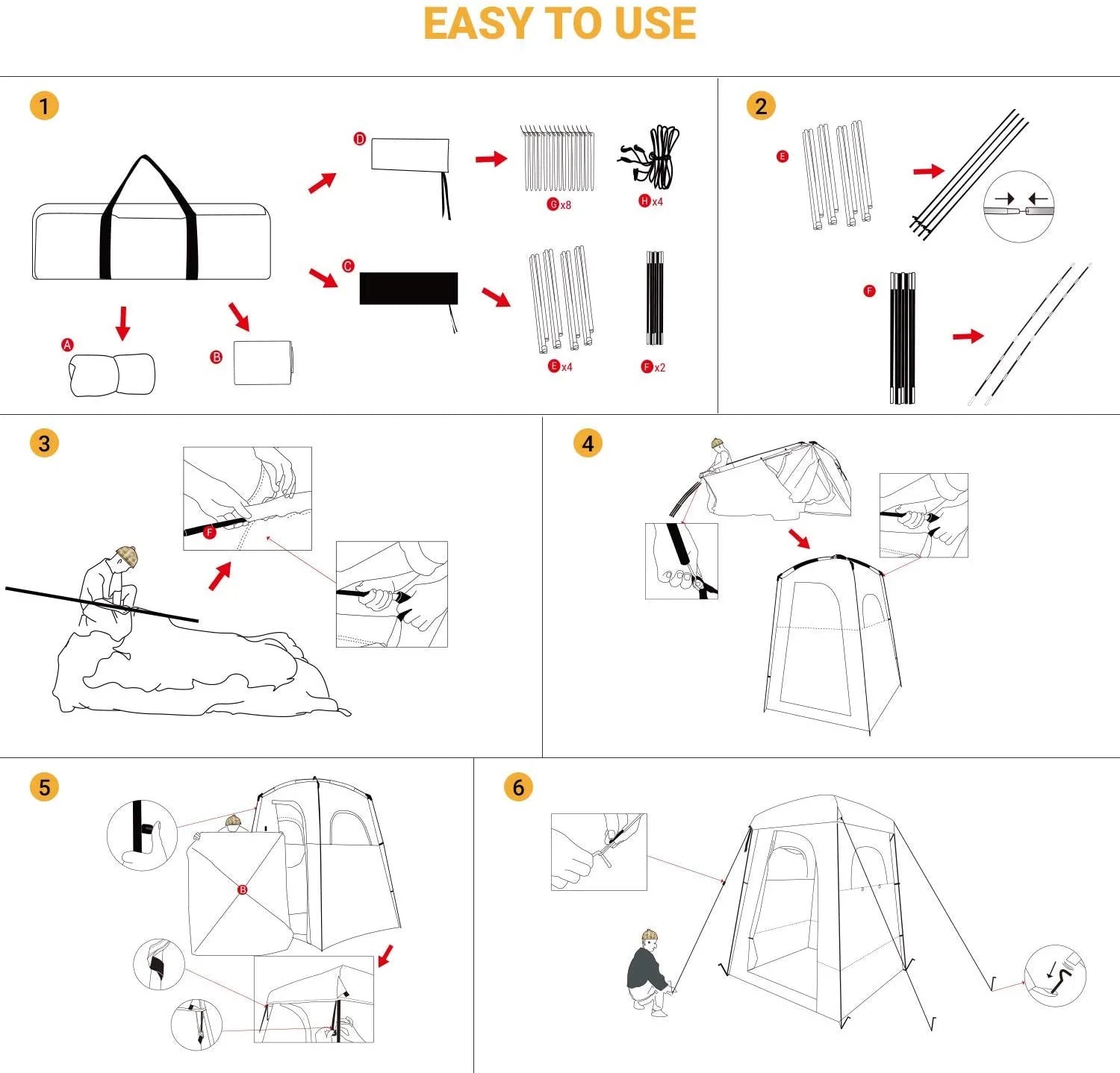 Additionally, it comes with a 20L solar shower bag, perfect for hot water showers on camping trips or in emergency situations. The tent is easy to assemble with pole clips that quickly snap over the tent poles, making it ideal for quick setups and on-the-go convenience.
