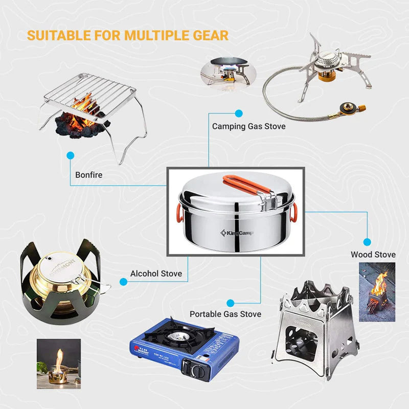 KingCamp KA2008 Adventure Stainless Steel Camping Cookware Mess Kit 25Pcs