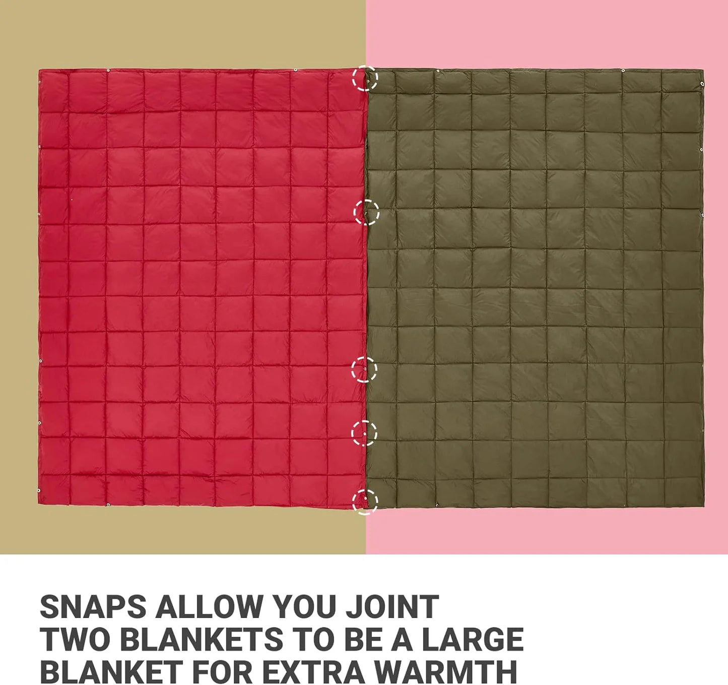 Crafted with premium 20D nylon fabric, this blanket is lightweight, durable, and water-resistant, offering reliable protection from cold and damp conditions. Filled with 250g ClusterLoft insulation, it delivers the soft, warm feel of real down without feathers, poking, or allergies—making it perfect for all-weather outdoor use.