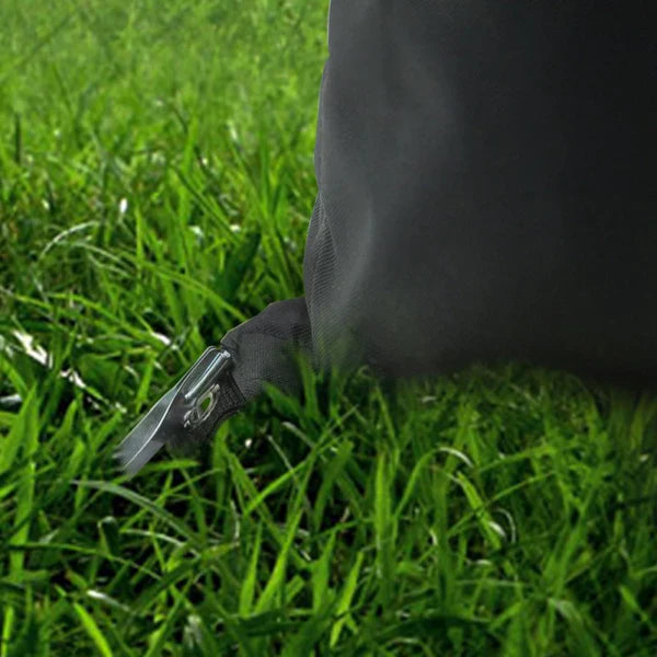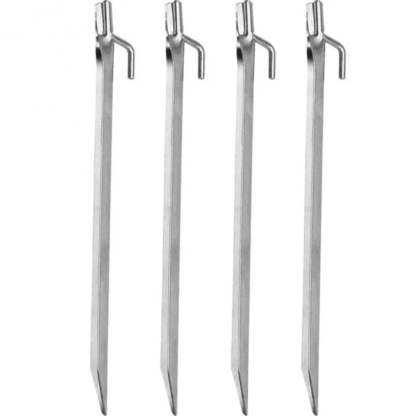 - Heavy-Duty Tent Pegs: Silver-plated iron stakes provide superior ground grip