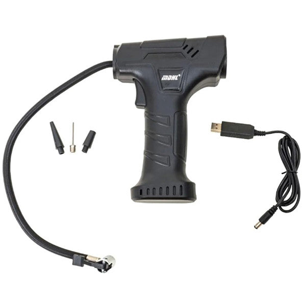 - The air pump features a compact cordless design and is small enough to store in your car, bike rack, or backpack