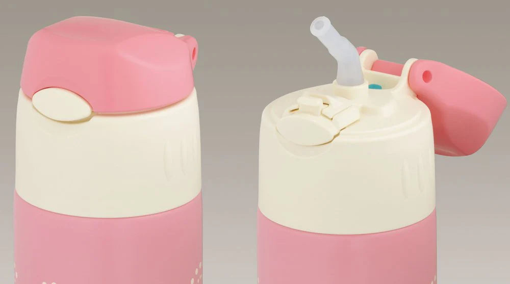 With a compact 400ml capacity, this bottle is easy to hold, carry, and fit in school bags or cup holders. The vibrant Sky Blue and Coral Pink colors make it both functional and fashionable. Weighing only 200g, it’s ideal for on-the-go hydration without adding bulk. Crafted from high-quality Thermos materials, it ensures durability, leak resistance, and long-lasting use.